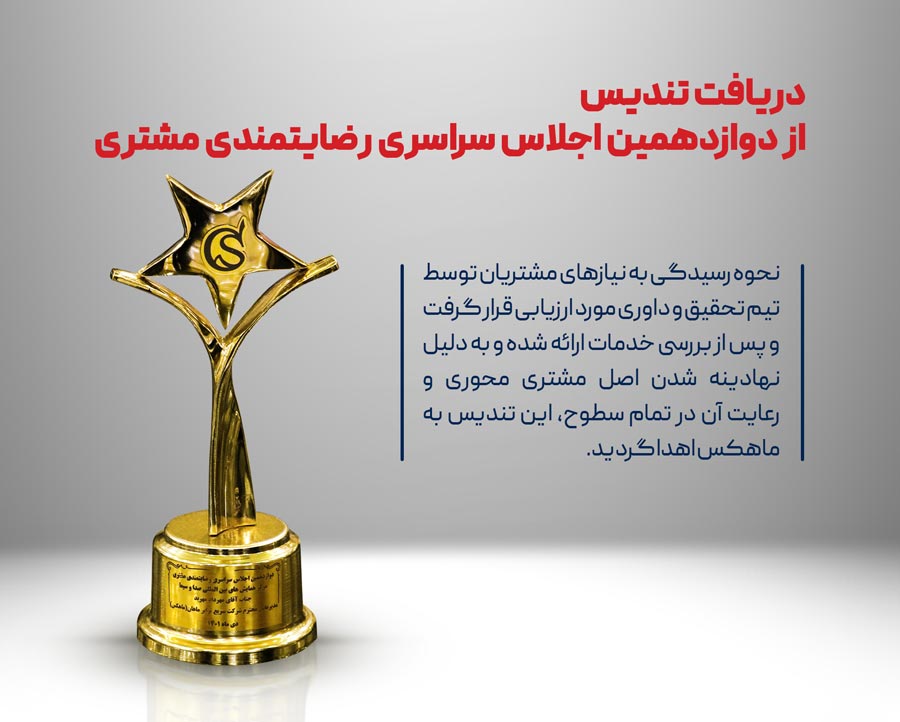 دریافت تندیس دوازدهمین اجلاس سراسری رضایتمندی مشتری